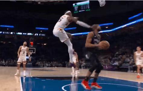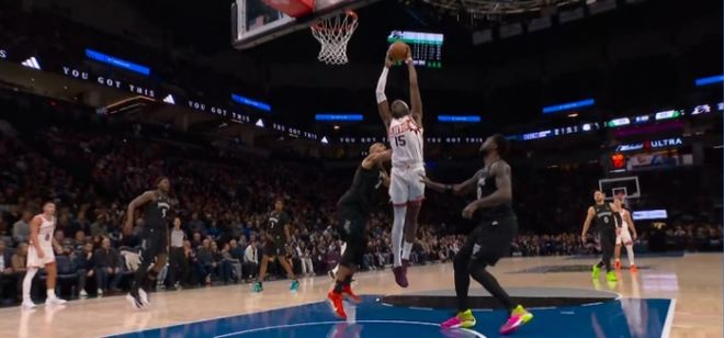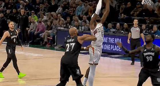 第三節(jié)比賽繼續(xù)進(jìn)行到還剩7分59秒時(shí),馬威接球準(zhǔn)備雙手暴扣,被戈貝爾狠狠犯規(guī)放倒。戈貝爾重重?fù)]肘擊中馬威的腰部,直接將馬威打到痛苦倒地,裁判吹罰戈貝爾一次二級惡意犯規(guī)。